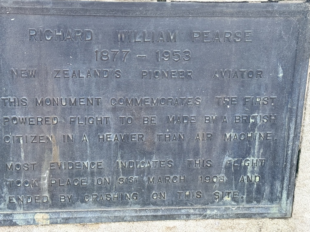 I mentioned to Brian I wanted to visit the Richard Pearse Memorial. After all, it was not far off our planned route, and it would add some interest. Who? said some of my fellow riders, and they were New Zealanders. Right says I, we have to do this.