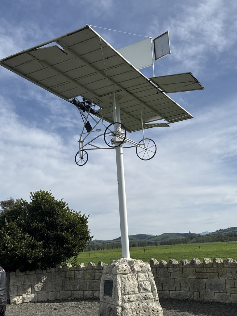 So, not long into the journey, we turned off SH1 onto the Waitohi Road and pulled over at the Richard Pearse Memorial—a fitting tribute to one of New Zealand’s more eccentric pioneers of flight. Click the link for more. Standing there, looking at the replica of Pearse’s rather… optimistic aircraft, it’s hard not to admire the sheer audacity of the man. Did he beat the Wright Brothers? Who knows. The history books would say not, but……
